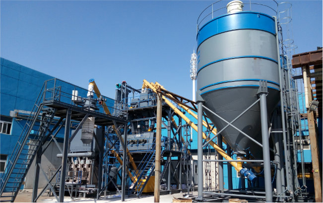 2016年12月,天津客戶采購山推建友1套SjGZD040-3G型干混砂漿站成功應(yīng)用,用于預拌干混砂漿生產(chǎn)線。該設(shè)備砂倉置于主樓設(shè)備頂部,粉料倉置于主樓旁邊,計量系統(tǒng)位于攪拌機上邊,計量完成后物料直接卸入攪拌機,具有占地面積小、生產(chǎn)率高、節(jié)能環(huán)保、等特點,適合精細干混砂漿的生產(chǎn)。