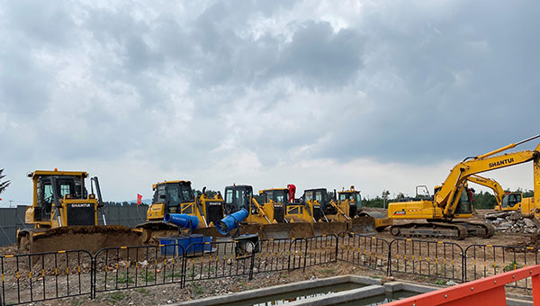山東某大型建筑施工工地,成套采購山推系列設備,推土機、壓路機、平地機等進行場平、排土作業(yè),山推設備以動力足、質(zhì)量好、效率高、故障率低贏得該工地青睞。