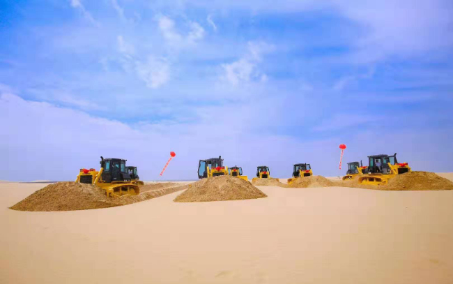 SD16D推土機(jī),助力國(guó)家沙漠治理、光伏項(xiàng)目的建設(shè)。沙漠地區(qū)溫度高,風(fēng)沙粉塵大對(duì)推土機(jī)進(jìn)氣系統(tǒng),冷卻系統(tǒng),駕駛室密封有嚴(yán)格的要求,SD16D推土機(jī)針對(duì)沙漠地區(qū)惡劣工況,定制化開(kāi)發(fā),由于超高的出勤率,超低的維護(hù)保養(yǎng)成本,贏得了用戶的充分認(rèn)可,為沙漠經(jīng)濟(jì)先導(dǎo)區(qū)的建設(shè)保駕護(hù)航。