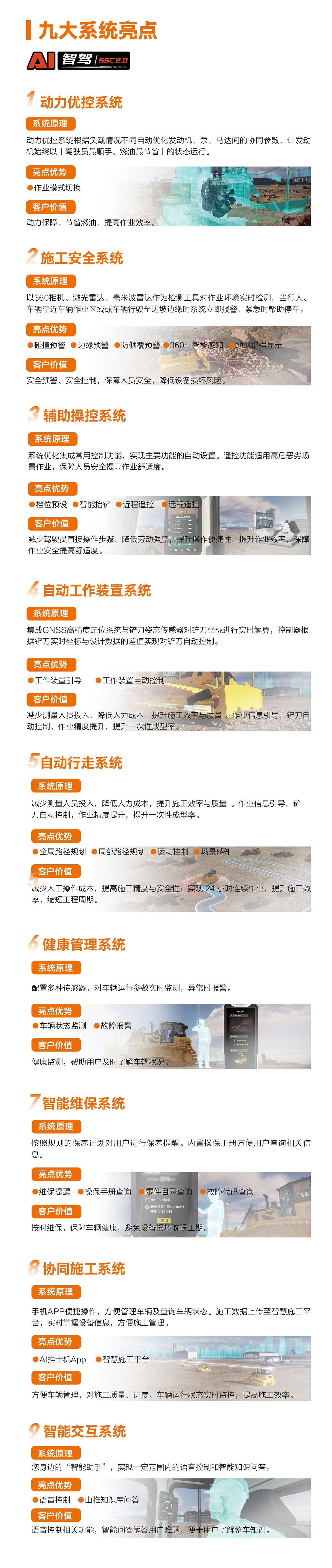AI智駕:DH17-G 推土機,可基于山推SSC( SHANTUI Smart Constuction)技術平臺實現AI升級,融合人工智能、大數據相關技術,構建 “感知 - 決策 - 執(zhí)行” 全智能閉環(huán),實現工況研判、路徑動態(tài)優(yōu)化、鏟刀厘米級精控,以技術革新引領工程機械智能化躍遷,是行業(yè)從 “機械作業(yè)” 向 “智能決策” 跨越的典范之作。