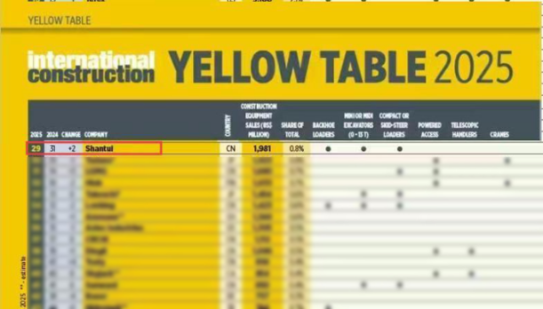 近日,英國KHL旗下《國際建設(shè)》雜志發(fā)布的2025年Yellow Table顯示,山推股份在全球工程機械制造商排名中從2024年的第31位上升至第29位,這一躍升不僅彰顯了山推股份在全球市場的競爭力,也反映了山推在2024年取得顯著成績。