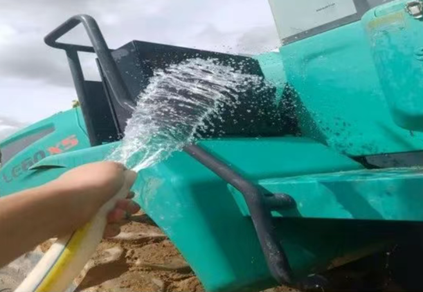 客戶在哪里,服務就延伸到哪里。首站,服務團隊來到一處從事泥土作業(yè)與洗沙作業(yè)的裝載機客戶現(xiàn)場。暴曬與驟雨輪番上陣,裝載機在泥濘中持續(xù)高負荷運轉(zhuǎn)。服務人員抵達現(xiàn)場后,顧不上濕透的衣衫,立即展開整機排查——空調(diào)制冷是否穩(wěn)定、散熱器是否堵塞、液壓系統(tǒng)是否泄漏、電氣線路是否老化,逐項細查,毫不松懈。每一個細節(jié)的把控,都是對設(shè)備可靠性的保障。