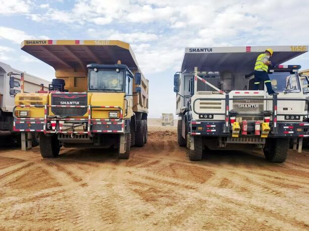 在新疆的廣袤戈壁上,某露天煤礦正書寫著能源建設(shè)的壯闊篇章。作為“疆電外送” 第三通道、“疆煤外運(yùn)” 的重要煤源保障,這座東西長約 9.54 公里、南北寬約 10.77 公里的巨型煤礦,年產(chǎn)能達(dá) 4000 萬噸,是新疆能源戰(zhàn)略布局中的關(guān)鍵一環(huán)。而在這片氣候嚴(yán)苛、工況復(fù)雜的礦區(qū),山推 SKH135-X 甲醇增程寬體自卸車憑借硬核實(shí)力,成為了重載運(yùn)輸?shù)?“明星選手”。
