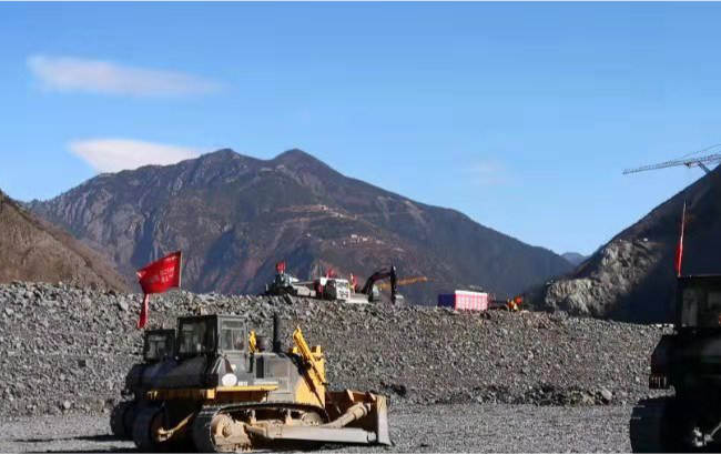 SD32推土機進(jìn)行西南地區(qū)水電站壩體建設(shè),推土機將土、石子等松散物料進(jìn)行推移堆積,壓路機壓平,澆注混凝土形成壩體。
