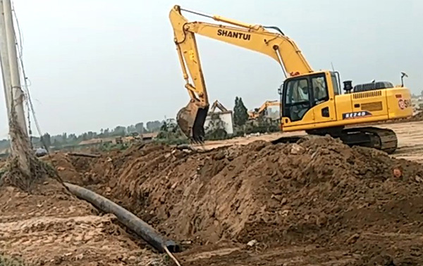 國內(nèi)某城市施工排水溝鋪設(shè)項(xiàng)目,使用山推系列挖掘機(jī)進(jìn)行排水溝挖掘工作,山推挖掘機(jī)以挖掘施工速度快、質(zhì)量性能優(yōu)異,故障率低的優(yōu)勢,成功入駐項(xiàng)目施工隊。
