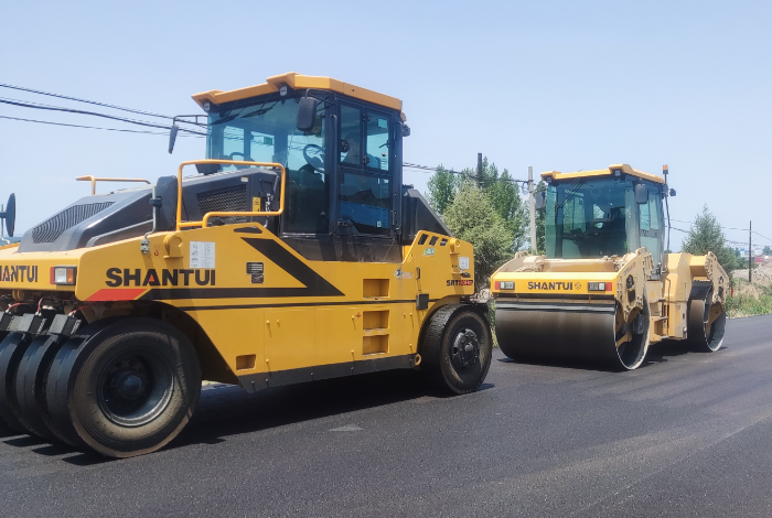 其中山推產(chǎn)品施工內(nèi)容包括:攤鋪機(jī)進(jìn)行一次性面層鋪設(shè),鋪設(shè)寬度8-8.5m;鋪設(shè)后先雙鋼輪振動壓實(shí),后膠輪壓路機(jī)靜碾揉搓表面壓實(shí),施工遍數(shù)兩次。施工后進(jìn)行壓實(shí)度、平面度測量,達(dá)到施工標(biāo)準(zhǔn)要求。